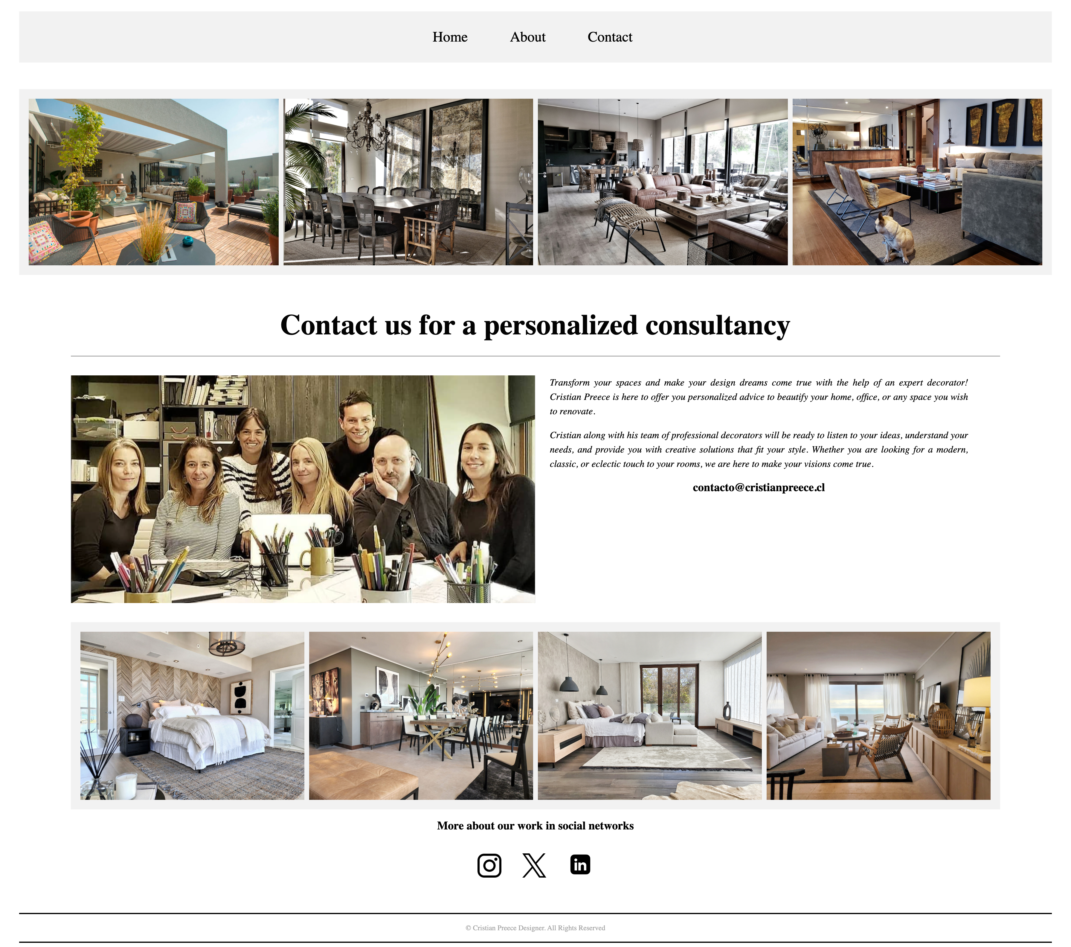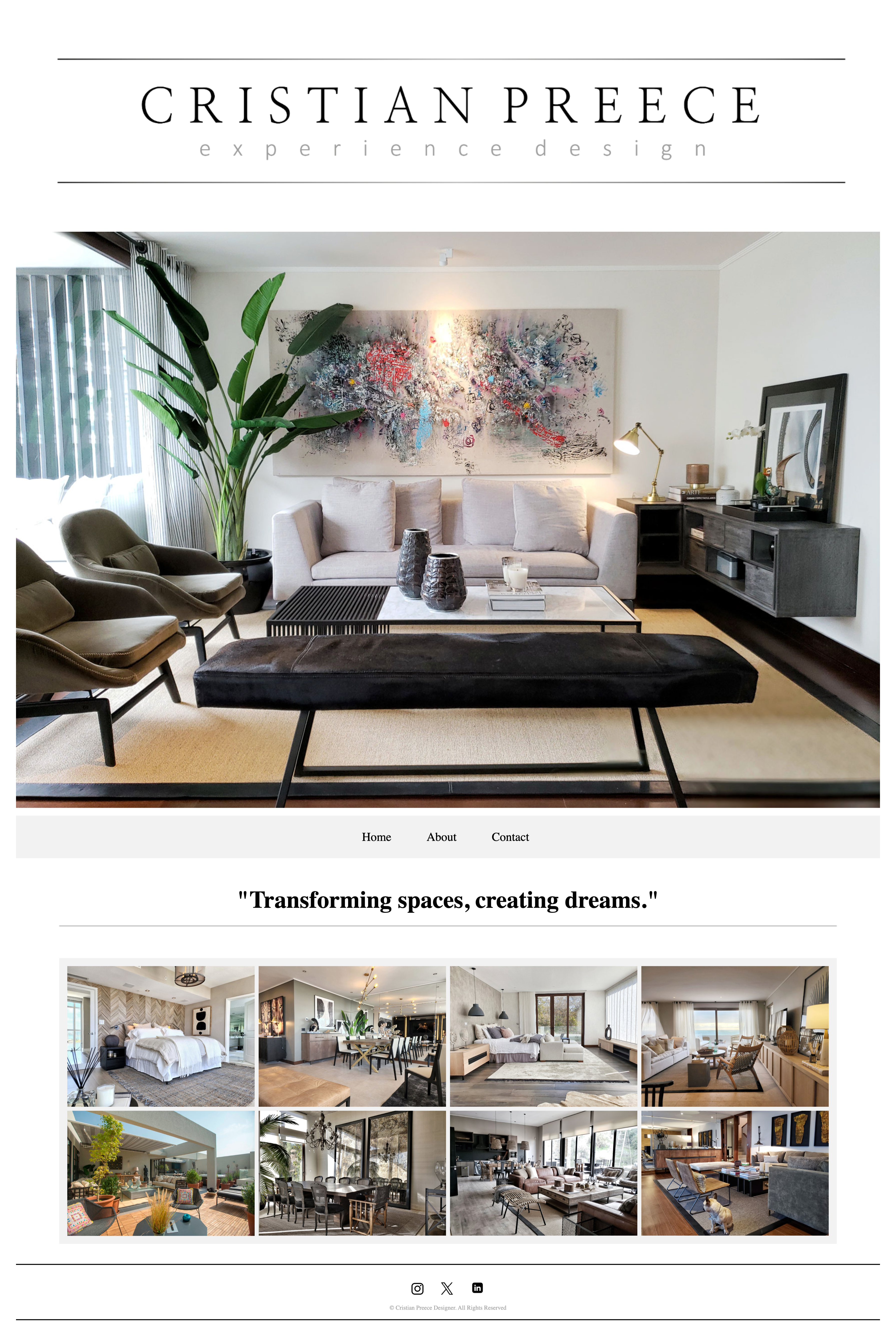 Take a look at this custom website built for an interior designer, crafted from scratch using HTML, CSS, and JavaScript. This project showcases clean code, responsive design, and a sleek aesthetic.